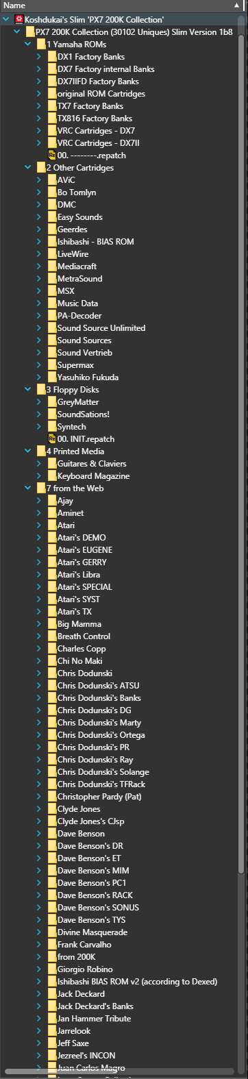 Just know that any amount you decide to give will be rewarding my effort and time spent processing, reorganizing and repackaging all the PX7 patches already freely available as a collection (but bloated with 70K+ duplicate patches, thus why I did this project).
