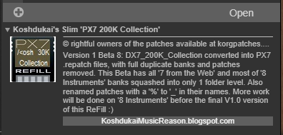 WARNING: YOU NEED TO OWN the "PX7 FM Synthesizer Rack Extension by Reason Studios" to enjoy and use this ReFill.